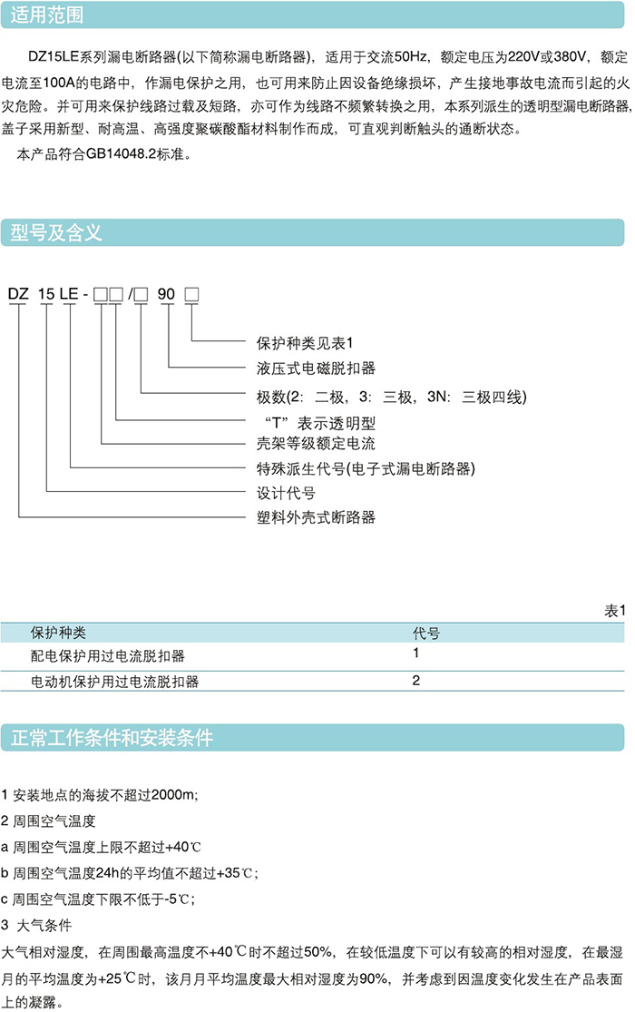 DZ15LE剩余電流動作斷路器